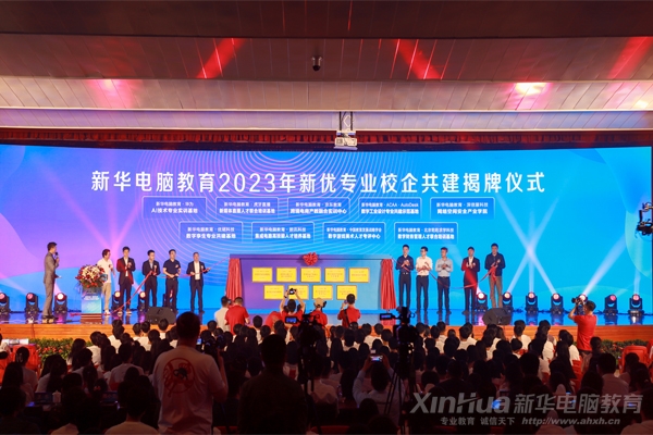 ▲新华电脑教育2023年新优专业校企共建揭牌仪式