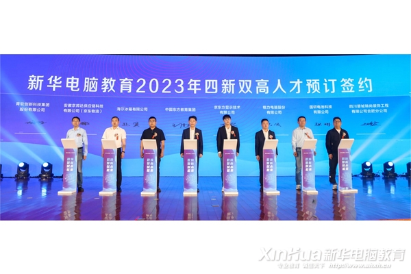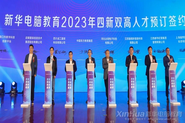 新专业培养新人才,新华电脑教育与相关企业签署2023年新人才培养协议,并正式启动了2023新华电脑教育“四新双高人才培养计划”。