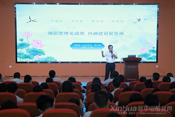安徽新华电脑专修学院隆重召开“大师讲堂”,举办《规范管理见成效 内涵建设促发展》专题讲座,安徽新华全体教师参与学习。