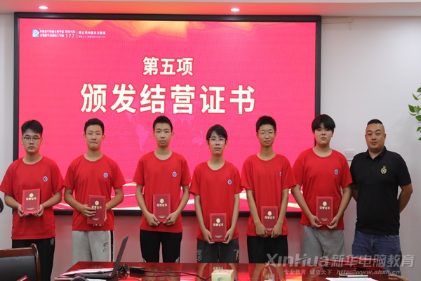 结尾,同学们在结营仪式上展示这两天的学习成果,机器时代(北京)科技有限公司经理张卫绪为夏令营学员颁发结营证书,就此机器人夏令营进入尾声,全体学员及相关教师合影留念。