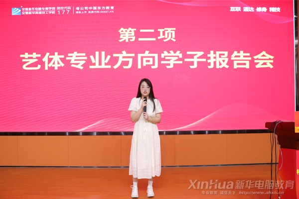 励志报告会的下半场高潮迭起,考取新疆艺术学院的高莹岳同学分享了自己的故事。她表示,自己曾经是一个胆小、内向的女孩,但是在老师和同学们的帮助下,她逐渐变得自信、勇敢。她说:“我要感谢我的家人、老师和同学们,是他们陪伴我度过了一个又一个难关。我会继续努力,争取成为一个对社会有用的人。”针对艺考专业学习,高同学现场也从自身谈起,需发扬优点,弥补缺点并与老师打配合,未来她将在艺术类高校发挥所长,立志成为一名人民教师。
