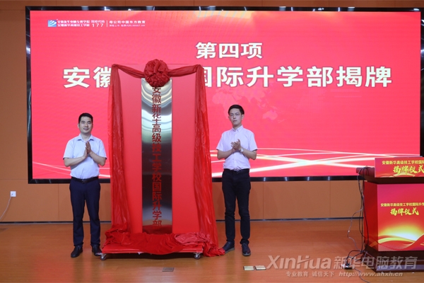 在揭牌环节,校领导和留学嘉宾共同为新部门揭牌,安徽新华高级技工学校国际升学部正式揭牌成立,现场气氛热烈。