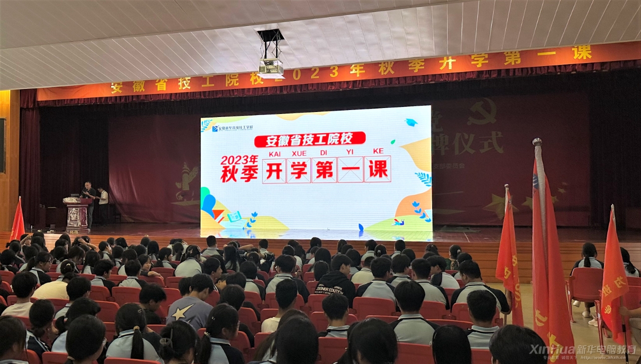 我校在学校大礼堂、多功能报告厅设置主会场,在各班级设置分会场,集体收看了“安徽省技工院校2023年秋季开学课”的网络视频直播。