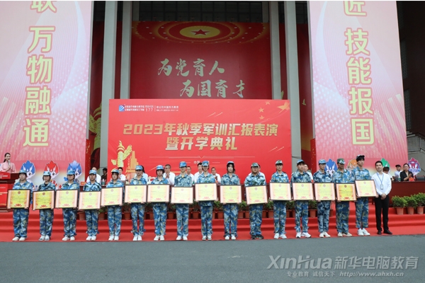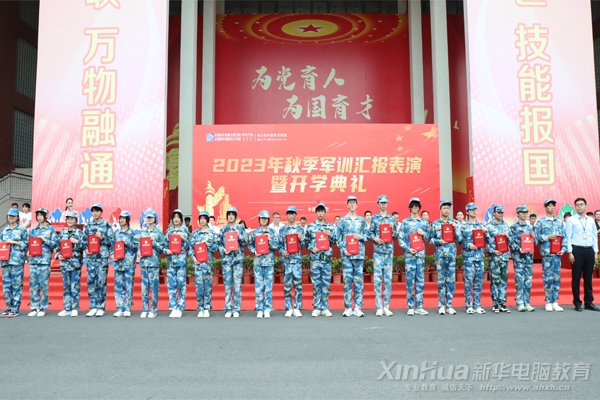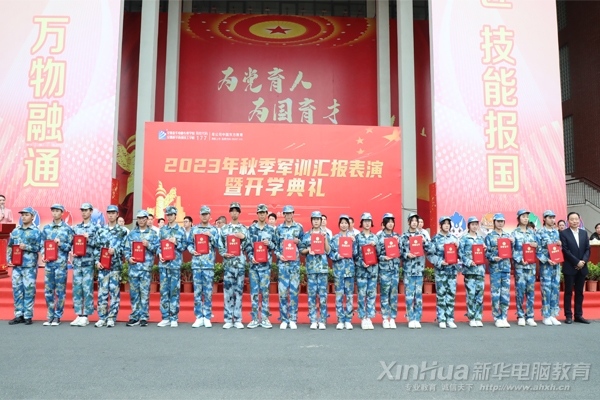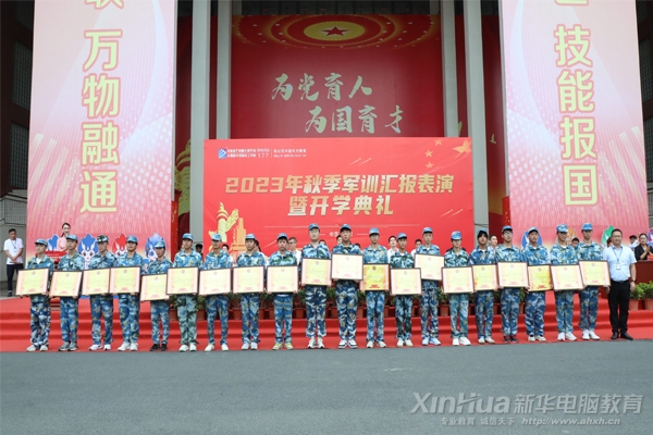 安徽新华电脑专修学院、安徽新华高级技工学校2023级新生历经九天军训的磨砺,9月26日,在综合楼前隆重举行2023年秋季军训汇报表演暨开学典礼。校长、副校长、系部主任、新生班主任以及参训教官一同参加闭幕仪式。