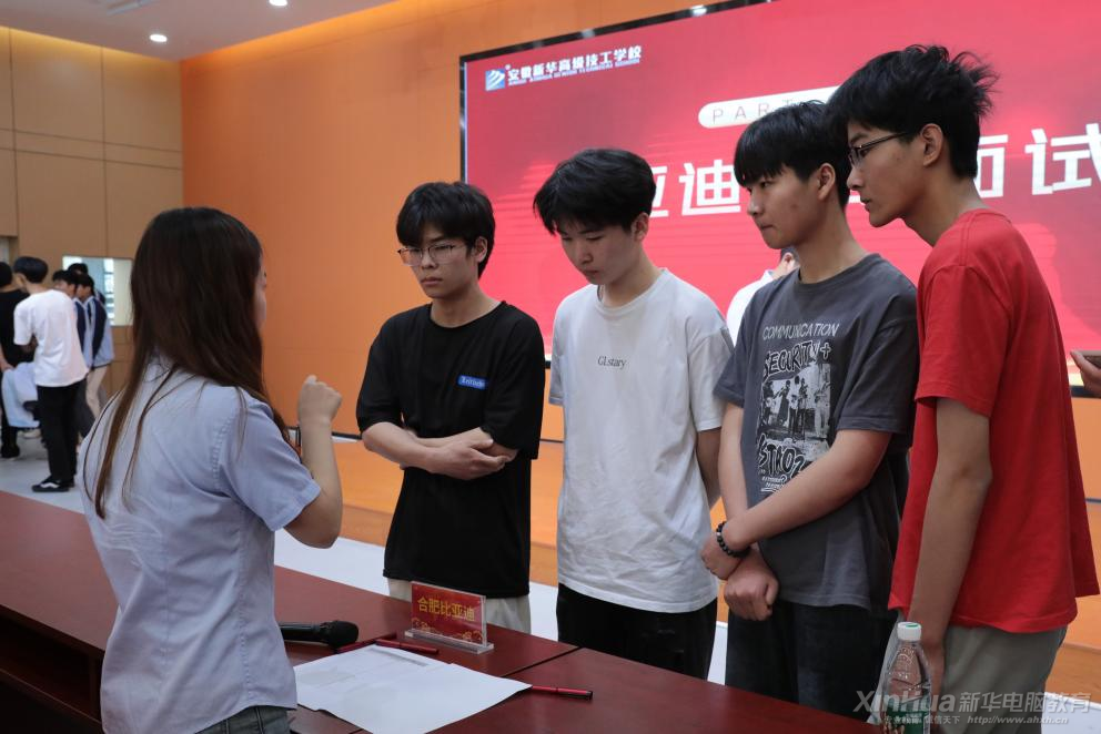 为积极相应国家发展改革委、教育部、人力资源社会保障部等8部门联合印发《职业教育产教融合赋能提升行动实施方案(2023—2025年)》文件精神,深化产教融合校企合作,支持职业院校联合企业、科研院所开展协同创新,引导企业深度参与职业院校专业规划、教材开发、教学设计、课程设置、实习实训,促进企业需求融入人才培养各环节。5月20日,合肥比亚迪顶岗实习宣讲会在安徽新华高级技工学校隆重举行。
