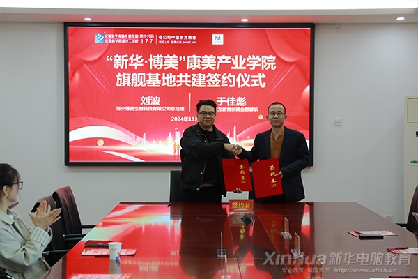 11月11日,“新华·博美”康美产业学院签约暨旗舰基地共建开工仪式在安徽新华高级技工学校隆重举行。校长王胜、中国东方教育创就业部部长于佳彪、海宁博美生物科技有限公司总经理刘波一行出席活动并现场签约。此次活动标志着安徽新华与博美集团在康美产业领域深度合作的新篇章,旨在共同推动康美产业的快速发展与人才培养。