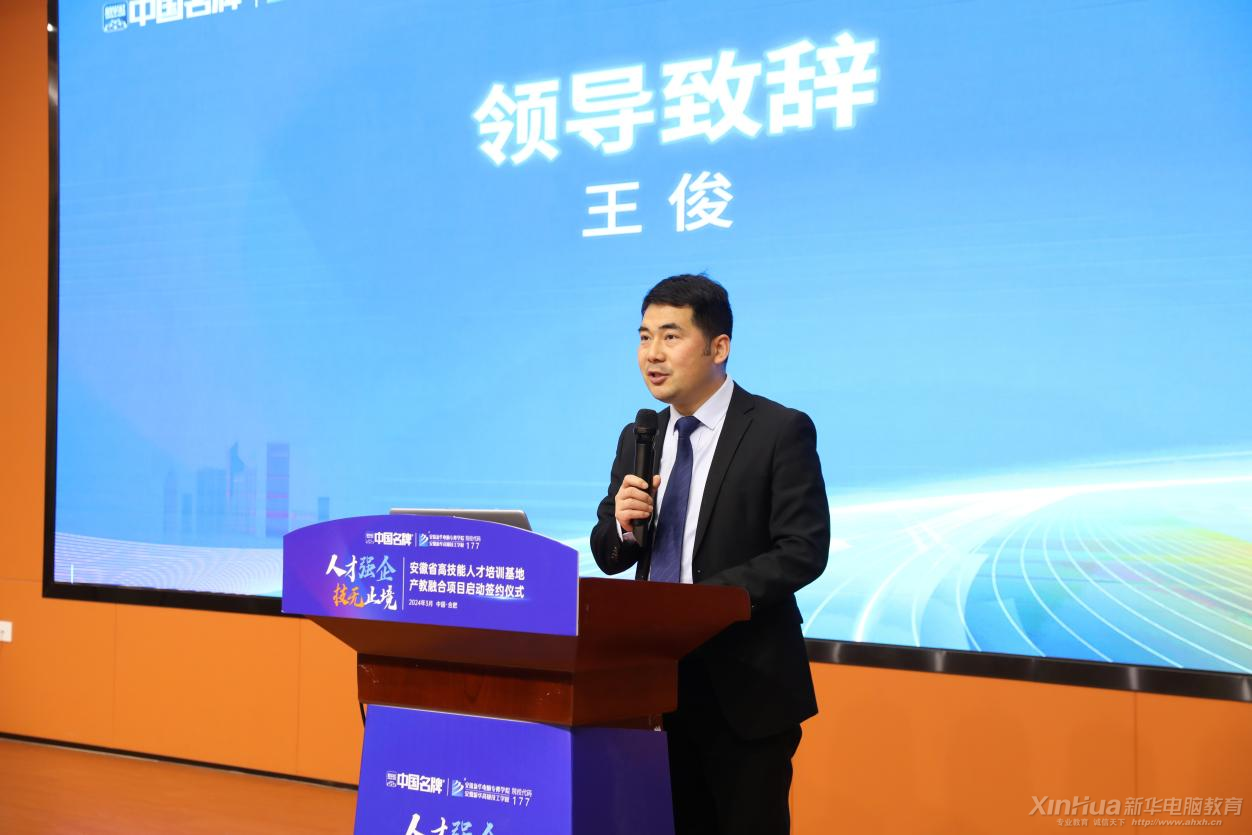 启动仪式上,副校长王俊携与会企业代表共同启动了安徽省高技能人才培训基地产教融合项目。这一环节不仅象征着校企合作的新篇章,也预示着安徽省高技能人才培养将迈入更加紧密、高效的新阶段。