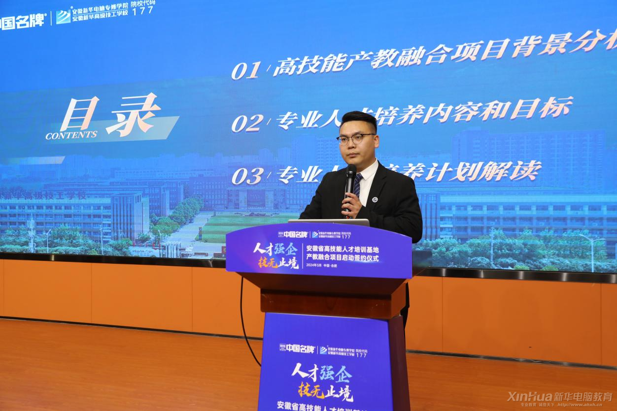 随后,高技能部主管鲁寒就“安徽省高技能人才培训基地产教融合培训项目”进行了详细报告,阐述了项目的总体规划和未来发展方向。