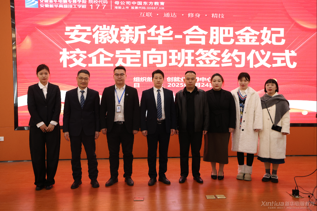 近日 ,安徽新华与合肥金妃校企定向班签约仪式在学校报告厅圆满举行。此次签约聚焦形象设计专业,旨在为学生提供更具针对性的职业教育,搭建校企合作的新桥梁。