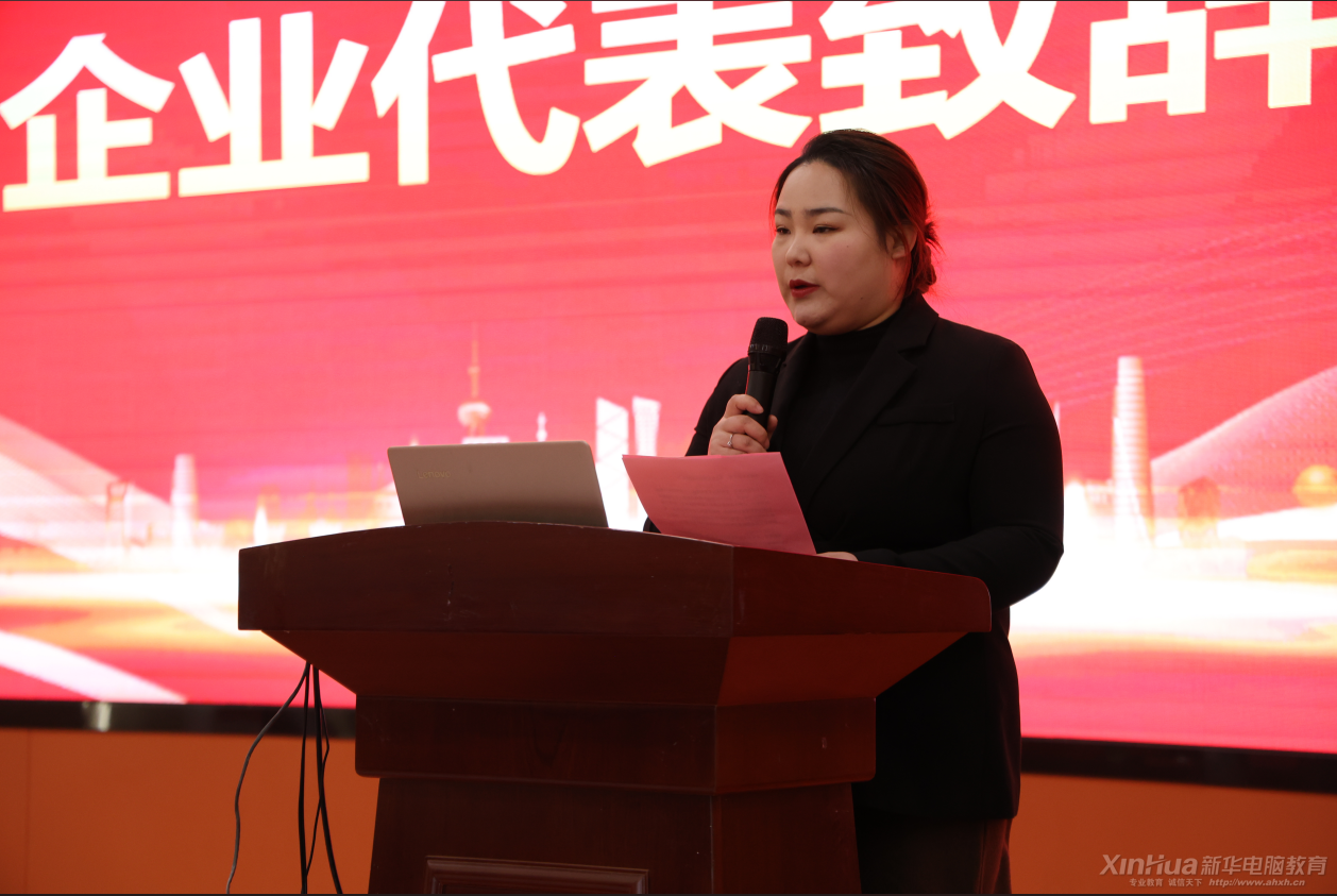 活动伊始,企业代表发表了精彩讲话。他指出,随着美容美妆行业的蓬勃发展,对专业形象设计人才的需求日益增长。合肥金妃作为行业内的知名企业,期待与安徽新华携手,共同培养适应市场需求的高素质技能人才。企业将为定向班学生提供丰富的实践机会、专业的技术指导以及广阔的职业发展空间。