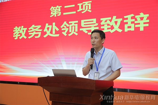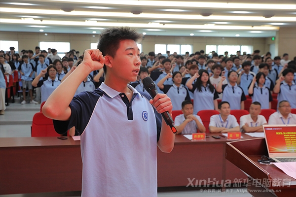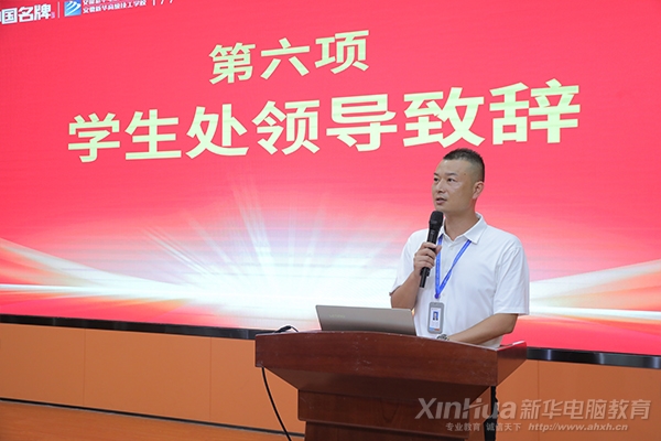 学生代表、电子商务专业新生王雨杰的发言充满了青春的激情与活力。他分享了自己选择安徽新华的初衷和对未来学习生活的展望,表达了全体新生努力拼搏、追求卓越的决心。随后,他带领全体新生庄严宣誓:“ 青春扬帆,预科启航;学思笃行,课堂争光;课后勤钻,知识满仓…… ”那铿锵有力的誓言彰显着新生们的坚定信念和昂扬斗志。