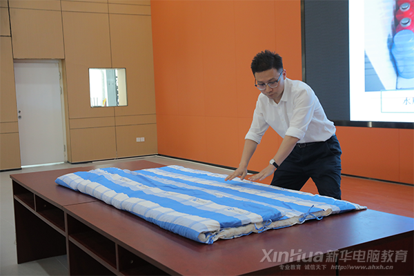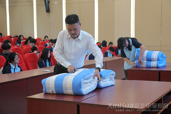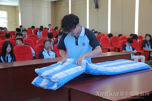 为强化新生内务管理能力,培养严谨细致的生活作风,安徽新华高级技工学校近日针对暑期预科班学生开展了叠军被专项训练活动。作为学校"三教三训"育人体系的重要实践环节,此次课程通过标准化示范与沉浸式体验,为新生扣好校园生活的第一粒纽扣。