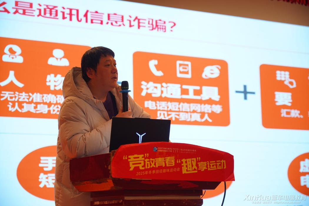 在通信信息行业“反诈宣传校园行”活动中,学校特邀中国电信合肥分公司孙璟袁同志到校授课。孙璟袁同志结合当前电信网络诈骗的新形势、新特点,以真实案例为切入点,深入浅出地剖析了网络刷单、虚假中奖、冒充客服退款、校园贷等常见诈骗手段的作案套路。同时,针对学生群体社会经验较少、防范意识薄弱的特点,重点讲解了个人信息安全保护的重要性,传授了识别、防范电信网络诈骗的实用技巧,引导学生树立“未知链接不点击、陌生来电不轻信、个人信息不透露、转账汇款多核实”的安全理念,从源头提升学生的反诈“免疫力”。