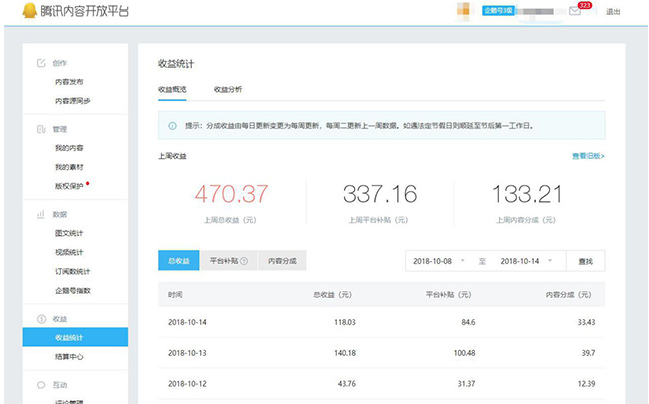• 工作之后,为了多赚点外快补贴生活,开始做企鹅号。平均每月收益3000多。
