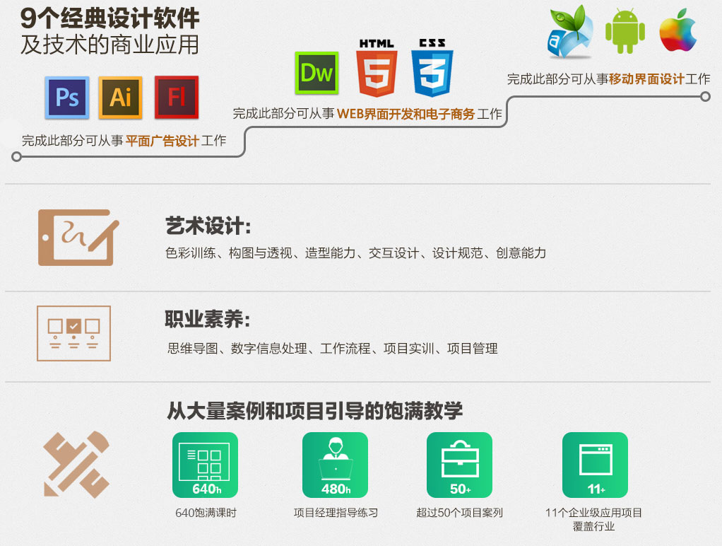 为了使UI设计专业的学生们学习并熟练使用移动移动媒体的特殊标准和设计技巧,为学生们配置了品牌电脑,让学生们更好的体验和设计交互界面,掌握UI设计的技巧。