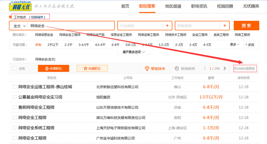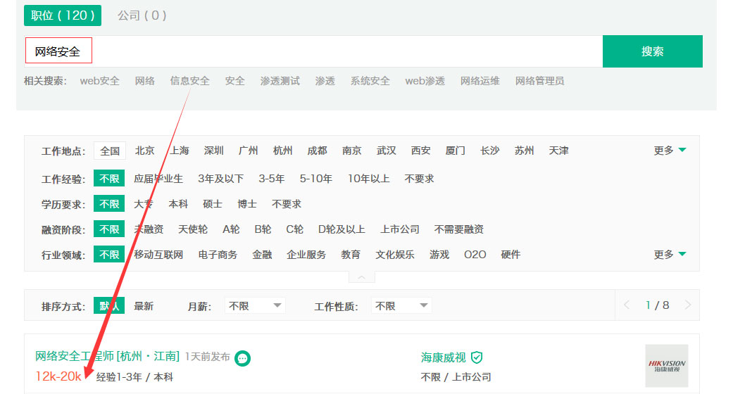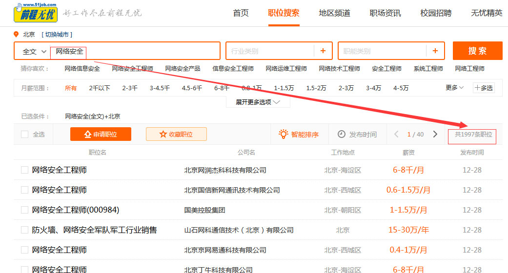 图为网络安全相关岗位招聘数据,随机截取作为参考,同口径职位需求量与日俱增。