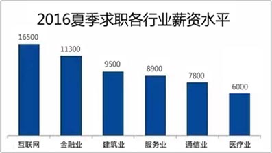 2016年756万毕业生已经在求职,据下列数据调查统计显示,互联网成为高薪行业。近几年被热捧的互联网行业成为当今热门的专业,市场的扩展增加了人才需求。你是做互联网的么?你准备做互联网嘛?互联网不止是技术,也没有那么高大上,只要你想,就努力试试!