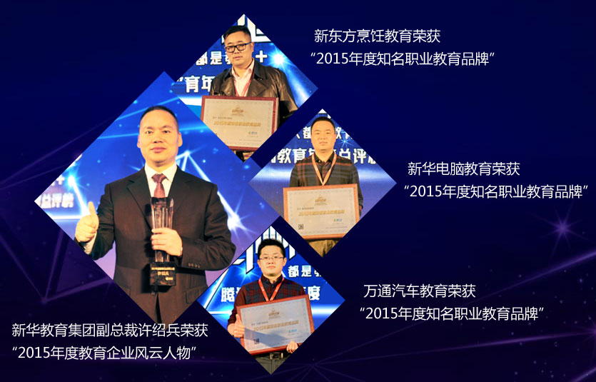新东方烹饪教育、新华电脑教育、万通汽修教育均荣获“2015年度知名职业教育品牌”
