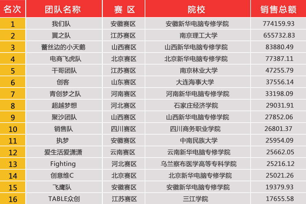 每赛区初赛成绩前6名的团队进入复赛,复赛由各赛区自行组织,参赛团队陈述本队初赛期间电子商务项目运营的全过程,重点突出“线上线下创意营销活动”(含策划、组织、执行、营销、效果评估),做PPT 简报展示及答辩,每队限时10分钟,复赛成绩结合初赛成绩,最终选拔出每赛区第一名,晋级决赛。