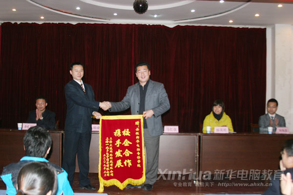 上海火速公司以向新华赠送锦旗的形式表达了感谢之情。上海火速网络科技有限公司全国培训总监马红强谈到:“感谢新华给了我们这么好的一个平台,去选拔适合企业的人才。我相信这次校企合作能够为每一位参加培训的学子带来收获。”