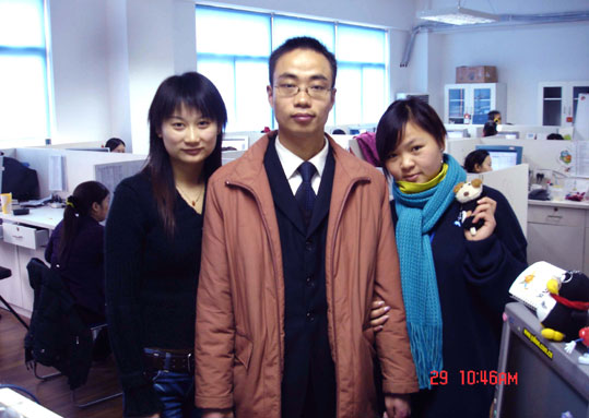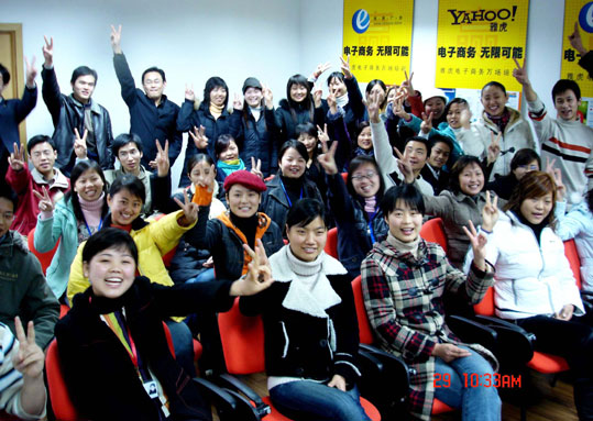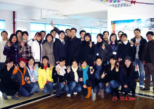 工作在上海得搜网络公司的部分新华学子与母校老师快乐的合影