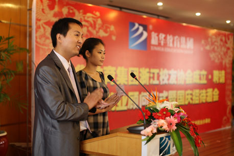 新华讯 金秋飒爽,凉风宜人。2009年9月19日下午,在这样一个雨后初晴的日子里,新华教育集团浙江校友协会成立·聘请企业就业顾问仪式暨国庆招待酒会在杭州市宝善宾馆八楼会议室隆重举行,新华教育集团就业管理部部长宋振庆、新华教育集团电脑事业部副部长陆真、安徽新华电脑专修学院院长张明等领导出席会议并发表了讲话。