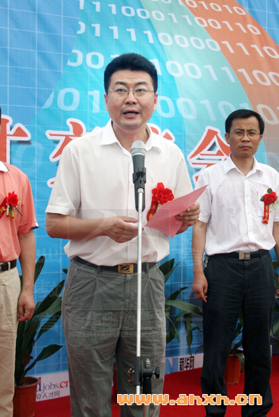 新华教育集团副总经理、安徽新华电脑专修学院院长沙旭预祝本次人才招聘会圆满成功