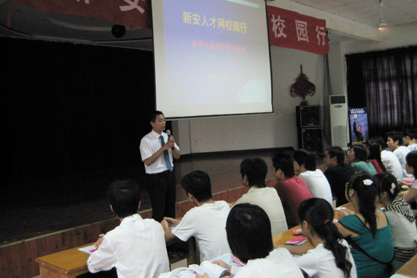 9月27日上午9时,新安人才网校园行走进新华。在多功能厅内,由新安人才网副总经理施小菊女士、香港信地集团人力资源部招聘经理闫磊先生针对即将就业的新华学子做细致详尽的就业指导。此次宣讲会吸引了300余名已进入导师班的各专业新华学子。
