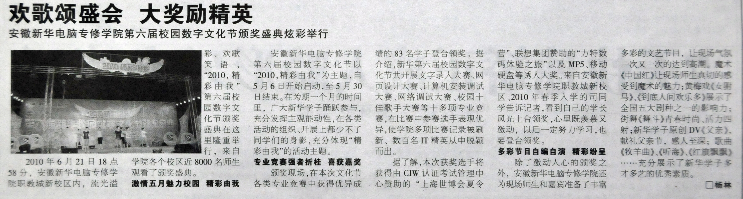 《江淮晨报》报道:欢歌颂盛会 大奖赠精英