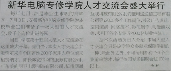 > 《市场星报》报道:新华电脑专修学院人才交流会盛大举行