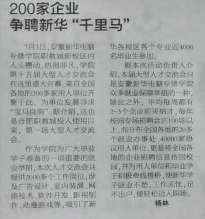 > 《新安晚报》报道:200家企业争聘新华“千里马”