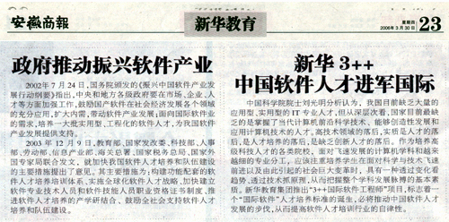 3月30日,《安徽商报》报道:新华3++ 中国软件人才进军国际的新闻并做了详细及相关报道!