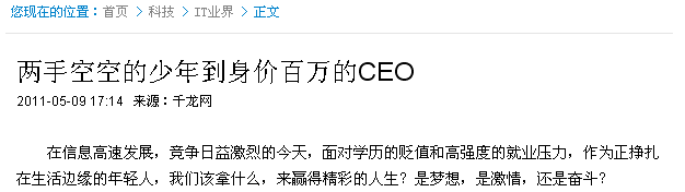 从“两手空空的少年”到“身价百万的CEO”
