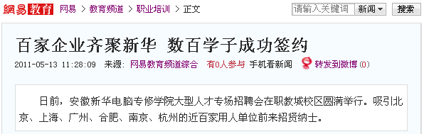 安徽新华电脑专修学院就业指导中心负责人在接受采访时说表示,今后学院还将继续采取积极措施,不断开拓新的就业市场,搭建数量更多、质量更高的就业平台,继续为新华学子们提供最优质的就业服务。