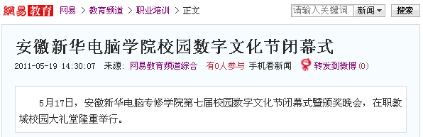 作为一项传承的校园文化活动,安徽新华电脑专修学院的校园数字文化节自2005年开始,已成功举办了七届。现已成为学院推行素质教育的一个重要举措,也是学院校园文明建设和数字艺术教育的重要内容之一,为营造健康和谐的校园文化氛围及良好的育人环境,发挥了不可替代的重要作用。