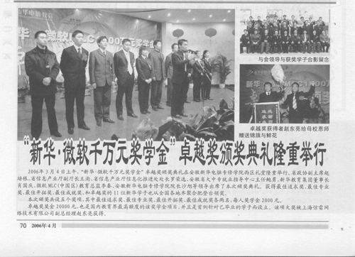 《新闻报道》2006年4月总第178期报道:《安徽商报》报道:新华四月 共建文明校园