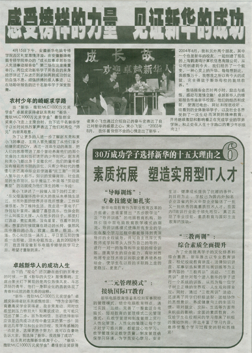 4月20日,《安徽商报》报道:“感觉榜样的力量 见证新华的成功”的新闻,敬请关注!