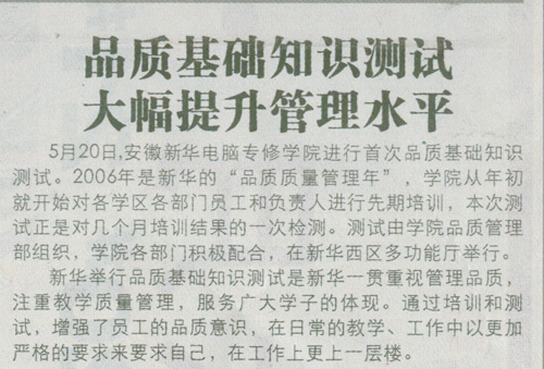 5月25日,《安徽商报》报道:“品质基础知识测试 大幅提升管理水平”的新闻,敬请关注!