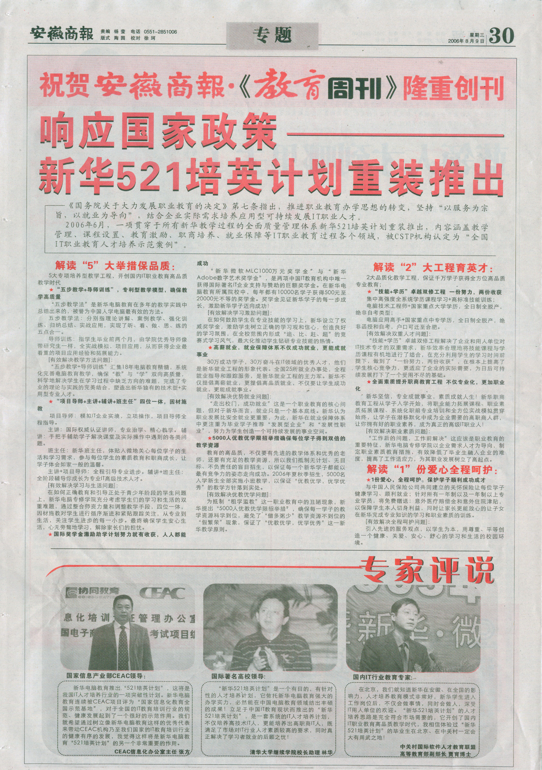8月9日,《安徽商报》报道:“响应国家政策——新华521培英计划重装推出”, 敬请关注!