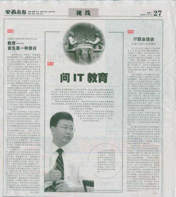《安徽商报》报道:响应国家政策——新华521培英计划重装推出