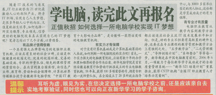 当前位置:首页 > 新闻中心 > 青春新华 > 《合肥晚报》报道:学电脑,读完此文再报名