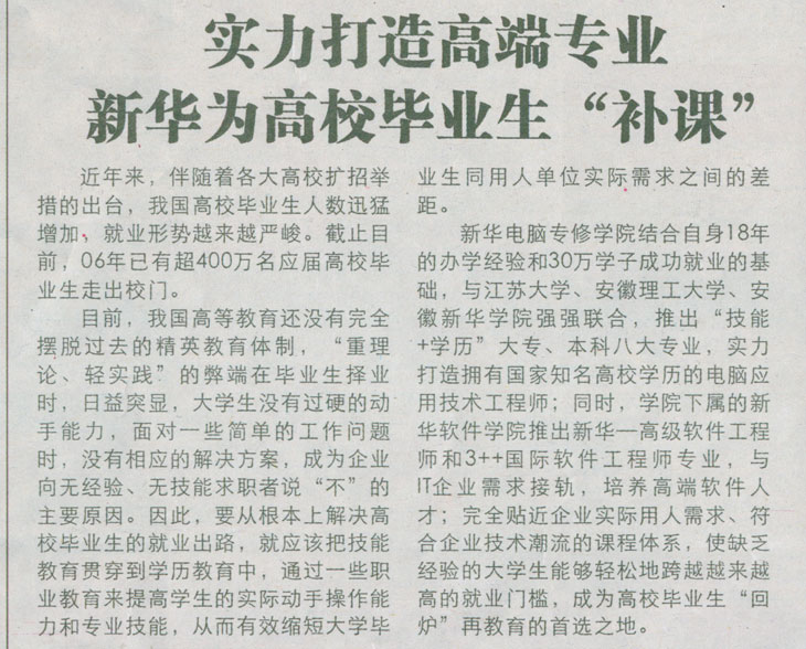 当前位置:首页 > 新闻中心 > 青春新华 > 《合肥晚报》报道:实力打造高端专业新华为高校毕业生“补课”