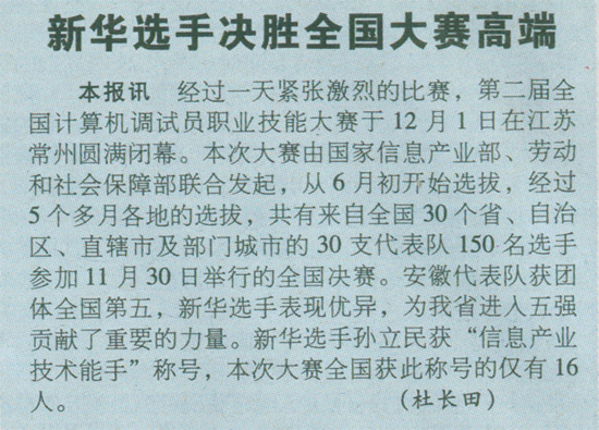 > 《合肥晚报》报道:新华选手决胜全国大赛高端