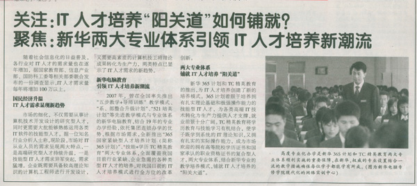 3月3日,《安徽商报》报道:“关注:IT人才培养“阳关道”如何铺就? 聚焦:新华两大专业体系引领IT人才培养新潮流”,敬请关注!