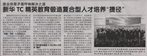 3月15日,《安徽商报》报道:“就业供需矛盾呼唤解决之道—新华TC精英教育锻造复合型人才培养‘捷径’”,敬请关注!