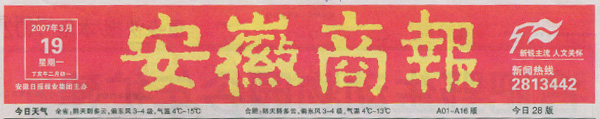 3月19日,《安徽商报》报道:“汇八方才俊 创百年新华—新华集团2007年再伸橄榄枝”,敬请关注!