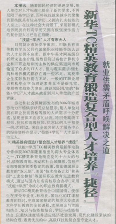 4月2日,《合肥晚报》报道:“就业供需矛盾呼唤解决之道——新华TC精英教育锻造复合型人才培养‘捷径’”,敬请关注!