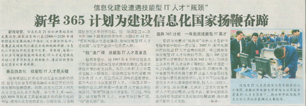 6月25日,《合肥晚报》报道:“信息化建设遭遇技能型IT人才‘瓶颈’——新华365计划为建设信息化国家扬鞭奋蹄 ”,敬请关注!