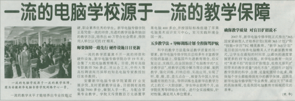 7月17日,《安徽商报》报道:“一流的电脑学校源于一流的教学保障 ”,敬请关注!