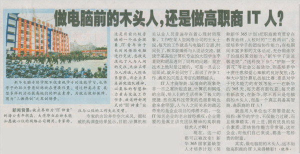 7月23日,《合肥晚报》报道:“做电脑前的木头人,还是做高职商IT人 ”,敬请关注!